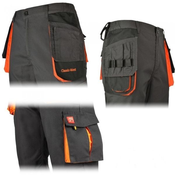- bardzo funkcjonalne kieszenie (z przodu, z tyłu i na nogawkach spodni) - w tym 2 przednie kieszenie monterskie (kaburowe), doskonałe do przechowywania narzędzi. Możliwość wsunięcia ich do innych przednich kieszeni, gdy aktualnie nie są używane,