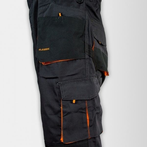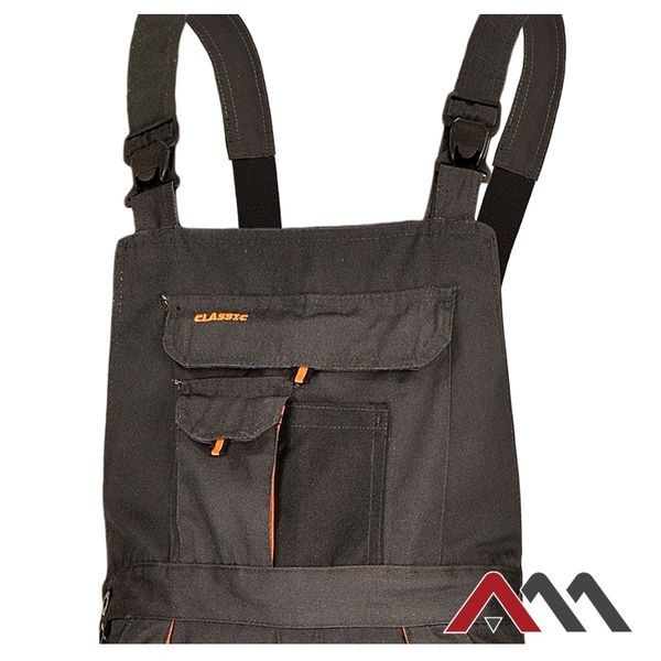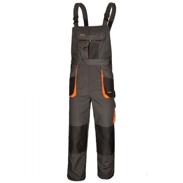Wysokiej jakości, bardzo wytrzymałe spodnie ogrodniczki robocze z dużą ilością kieszeni. Mocne potrójne szwy oraz ryglowanie w miejscach najbardziej narażonych na rozprucie. Na kolanach oprócz wzmocnień wszyta jest kieszeń umożliwiająca zastosowanie piankowych wkładek / nakolanników (dostępne do kupienia w naszym sklepie).
